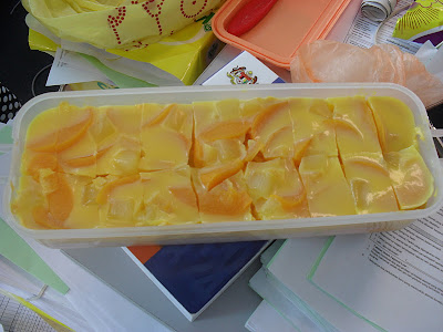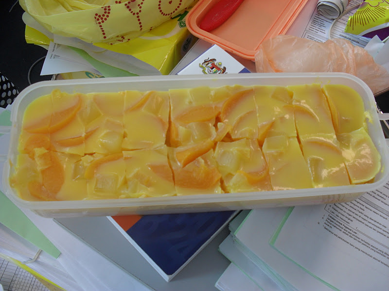 gambar dari permukaan atas jek,aku buat 3 lapis sebenarnya,aku guna buah peach je,akhirnya sumer kengkawan nak amik resepi..hehe..